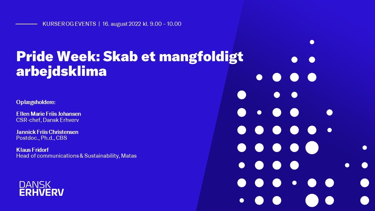 For at understøtte et inkluderende arbejdsklima for LGBT+-personer på det danske arbejdsmarked, har vi siden 2022 afholdt et årligt webinar i anledning af Pride Week i august.