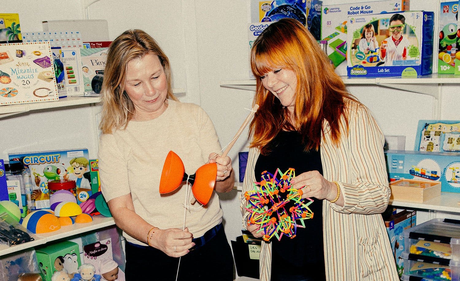 Sammen med Jane Vestergaard, der sidder ved siden af hende, har hun siden 2005 drevet Legeakademiet – en webshop med fokus på lærende og udviklende kvalitetslegetøj. De to stiftere er netop hjemvendt fra legetøjsmesse i Nürnberg, Tyskland.