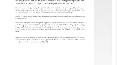 Når kommuner, regioner og den danske stat skal indrette erhvervs- og uddannelsespolitik, er det relevant at vide, hvordan den private beskæftigelse fordeler sig. Det kan give en indikation af, hvor mange privatansatte der berøres af politiske tiltag.