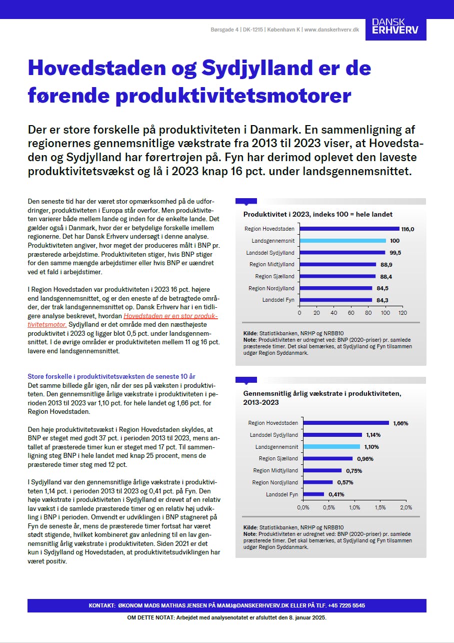 Hovedstaden og Sydjylland er de førende produktivitetsmotorer