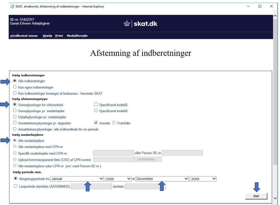 Vælg Afstemning af indberetninger
