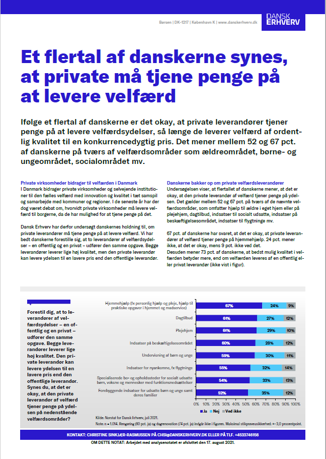 Ifølge et flertal af danskerne er det okay, at private leverandører tjener penge på at levere velfærdsydelser, så længe de leverer velfærd af ordentlig kval...