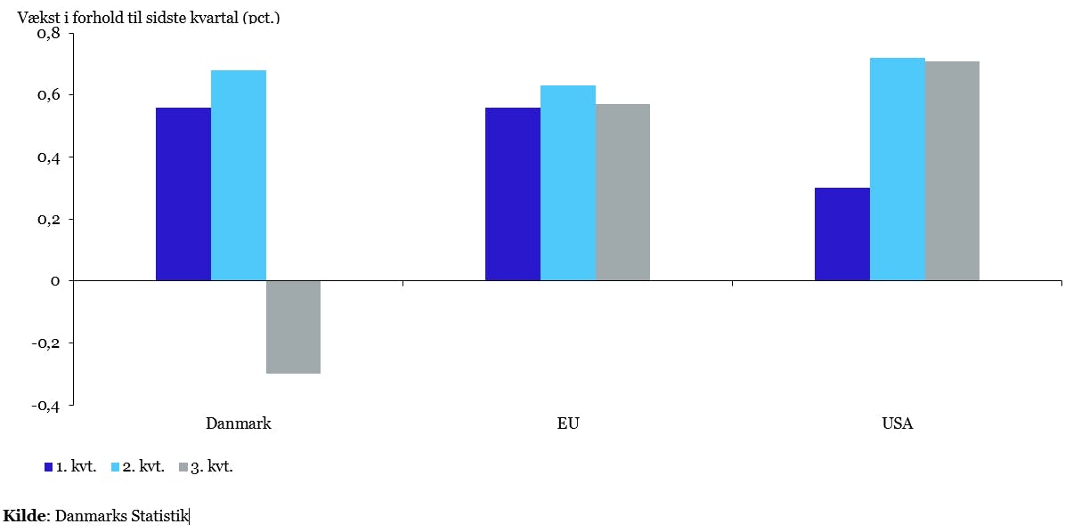 Vi havde ellers indtil 3. kvartal i år haft seks kvartaler i træk med fremgang i dansk økonomi – men mere kunne det altså ikke blive til i denne omgang.
