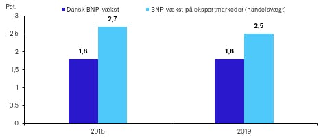 Væksten sidste år var på 2,3 pct., men var dog i høj grad trukket af et en enkeltstående betaling for brug af danskejede intellektuelle rettigheder – det bidrog isoleret set til at BNP sidste år steg med 0,4 pct. Det betyder, at væksten sidste år ville have været på blot 1,9 pct., hvis vi ser bort fra den enkeltstående betaling. Den ekstraordinære betaling sidste år trækker også med ind i vækstprognosen for i år, hvor regeringens økonomer i prognosen ser bort fra den enkeltstående betaling – ellers ville deres vækstskøn for i år have været lavere.