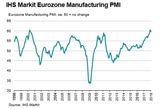 IHS-Markit har offentliggjort de såkaldte PMI-tal for Euroområdet. PMI-tallene giver os et helt opdateret indblik i de aktuelle konjunkturelle tendenser, og vi må konstatere, at alt tyder på, at det europæiske opsving kommer til at fortsætte i år.