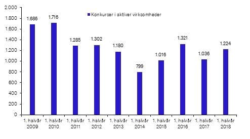 Flere konkurser i 1. halvår af 2018 ift. 1. halvår af 2017