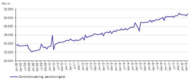 Torsdag kom Nets med tal for dankortbruget i maj. Det viste, at den samlede dankortomsætning blev på knap 31 mia. kr. i maj, når der tages højde for almindelige sæsonudsving.