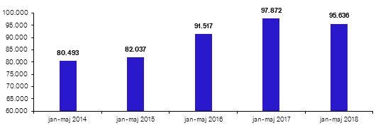 I årets første fem måneder er der blevet solgt lidt over 95.600 nye biler – godt trukket på vej af pæne tal for januar og februar. Dermed ligger niveauet for antallet af nye biler fra januar til maj 2 pct. under niveauet fra de første 5 måneder af 2017. Historisk set ligger niveauet for 2018 indtil videre dog stadig pænt til, og da vi for nyligt fik tal for BNP-væksten i 1. kvartal i år, var det særligt bilsalget, der havde været motor bag væksten i det private forbrug.