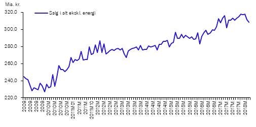 Tallene for marts viste, at firmaernes salg ekskl. energi faldt yderligere i marts i forhold til februar. Således var salget ekskl. energi 0,9 pct. lavere i marts end i februar korrigeret for sæsonudsving. Betragter vi 1. kvartal 2018 samlet set, så faldt virksomhedernes salg ekskl. energi med 1,3 pct. i forhold til 4. kvartal sidste år – og det er efter, der er taget højde for, at salget normalt er højere i det sidste kvartal af året. Dermed indikerer firmaernes salg ikke, at dansk økonomi buldrer derudaf, hvilket også blev bekræftet i ugens løb af den såkaldte BNP-indikator fra Danmarks Statistik, som dog trods alt pegede på vækst i 1. kvartal i år, men i et ret moderat omfang på 0,3 pct.