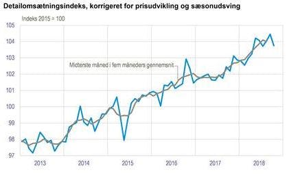 Overordnet har detailsalget været stigende gennem 2018. Udviklingen trækkes af solide privatøkonomiske forudsætninger. Beskæftigelsen er steget 66 måneder i streg og er rekordhøjt, vores boliger er steget i værdi, vores lønninger stiger mere end priserne i butikkerne og renterne er fortsat på et meget lavt niveau. Alt det er med til at give luft i de danske husholdningsbudgetter og dermed plads til øget forbrug.
