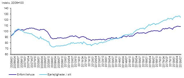 Faldet i ejerlejlighedspriserne skal også ses i lyset af at ejerlighedspriserne er steget med 44 pct. i løbet af de sidste fem år, mens huspriserne til sammenligning er steget med 23 pct. i samme periode. Vi har over de senere år oplevet kraftigt stigende ejerlejlighedspriser, mens vi ikke har set de tilsvarende høje prisstigninger på huse.