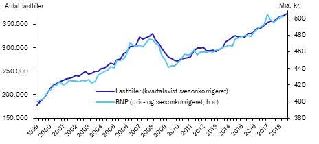 BNP-væksten herhjemme bliver efter alt at dømme i et lavere gear i år sammenlignet med de seneste par år. I første halvår af 2018 blev opsvinget trukket af vækst i privatforbrug, mens eksporten ikke formåede at løfte sig. Skal BNP-væksten op over 1. pct. i år, skal opsvinget skifte gear i 2. halvår. Lastbilsindikatoren peger heldigvis i retning af en smule højere fart på dansk økonomi – dog uden at væksten buldrer afsted.
