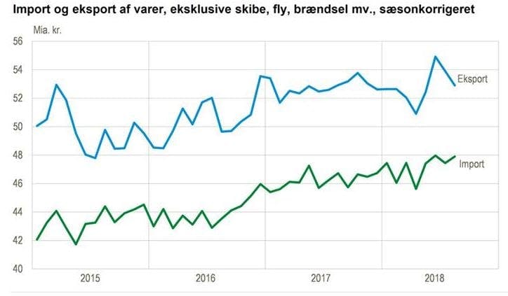 Danmarks Statistik har offentliggjort tal for den danske vareeksport frem til og med august i år. Vareeksporten har været nedadgående siden sidste efterår, men tog dog revanche lige før sommerferien, men faldt dog igen i juli.