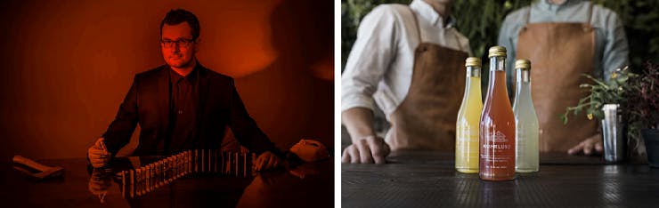 Tv.: Mystery Makers er et prisvindende eventbureau, som startede i 2010. Th.: Nohrlund er en dansk startup-virksomhed, som i 2015 startede med at producere cocktails på flakse.