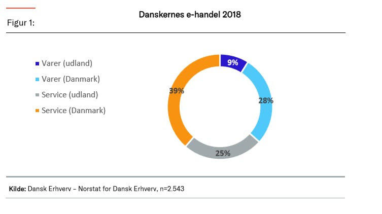 Ser vi på fordelingen kan vi konstatere, at e-handlen med varer tegnede sig for omkring 37 pct. og services de resterende knap en tredjedel.