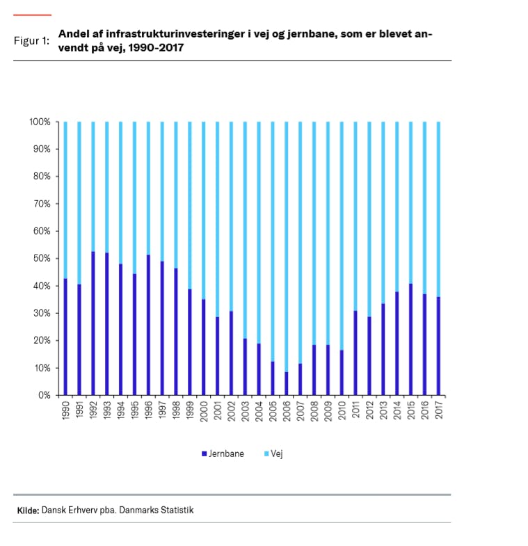 Alligevel har investeringer i vej udgjort under en tredjedel, hvis man ser på de seneste 10 år, eller de seneste 20 år.