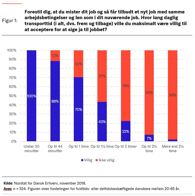 Dansk Erhverv har derfor undersøgt danskernes villighed til at pendle efter nyt job, hvis de bliver ledige.