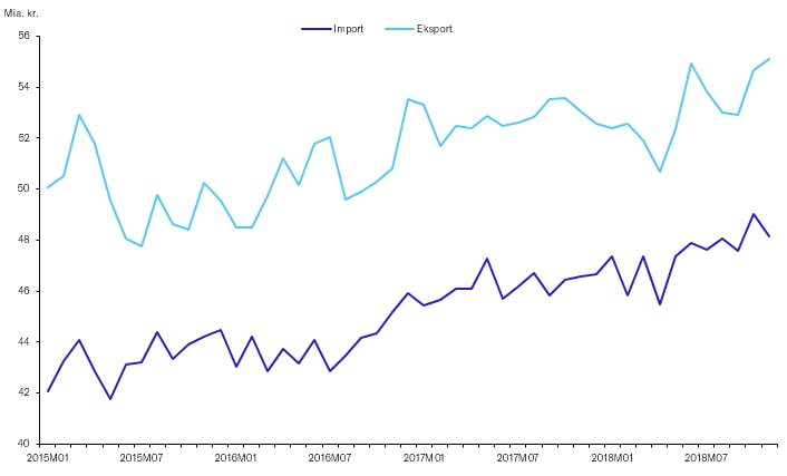 Vareeksporten har været på lidt en rutsjetur i 2018. Vareeksporten var faldende frem mod sommeren, hvorefter vi oplevede pæne vækstrater for det danske salg af varer til udlandet. Glæden varede dog kort, for i juli oplevede vi igen faldende vareeksport.