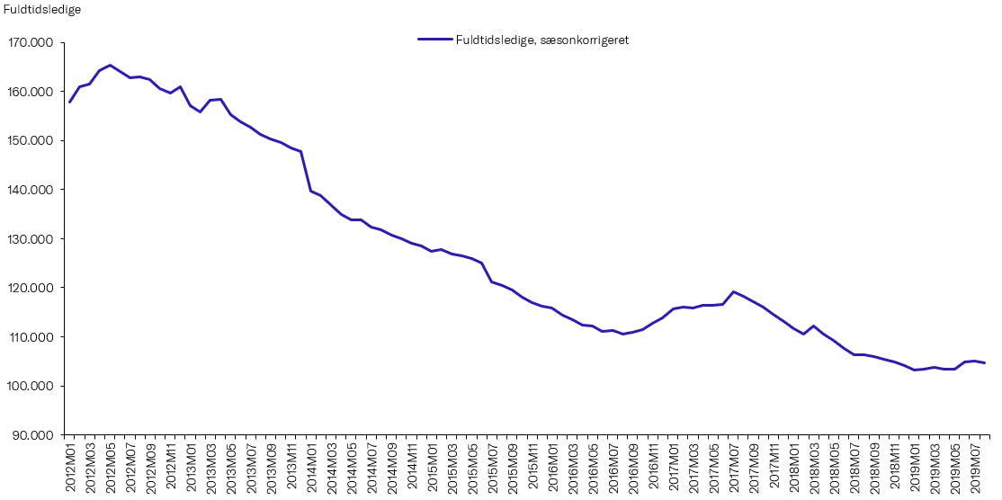 Fredag offentliggjorde Danmarks Statistik tal for udviklingen i ledigheden fra oktober til november. Tallene viste, at bruttoledigheden faldt med 600 fuldtidspersoner til 105.500, når der tages højde for almindelige sæsonudsving.