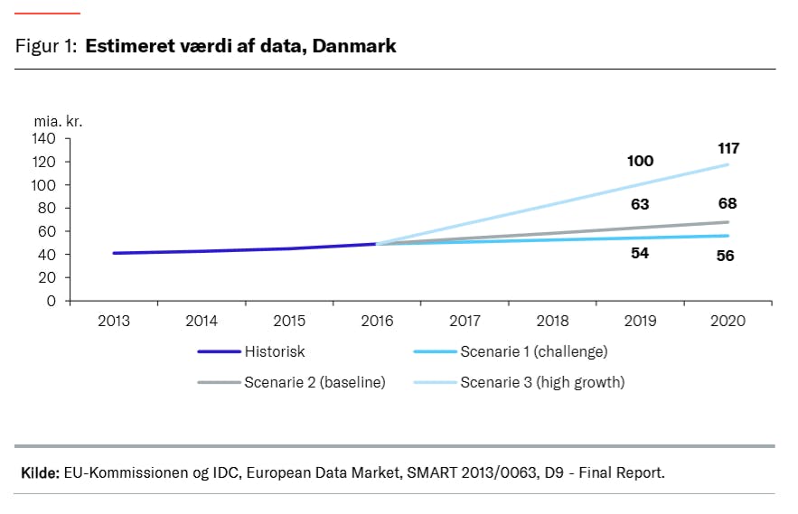 Vi viser i det følgende, at data har stor økonomisk værdi; data er et råstof i den digitale økonomi og repræsenterer en værdi, der svarer til 3 pct. af BNP. Men data er også den digitale økonomis akilleshæl, og både værdien og risici bliver kun endnu større i de kommende år.