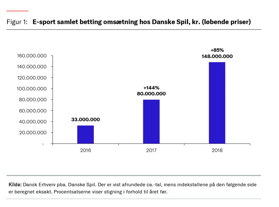 Ser vi på Danske Spils omsætning på e-sportsbetting samlet, er de fra 2016 til 2018 mere end firdoblet. Og ser vi specifikt på CS:GO er det tæt på syvdoblet.