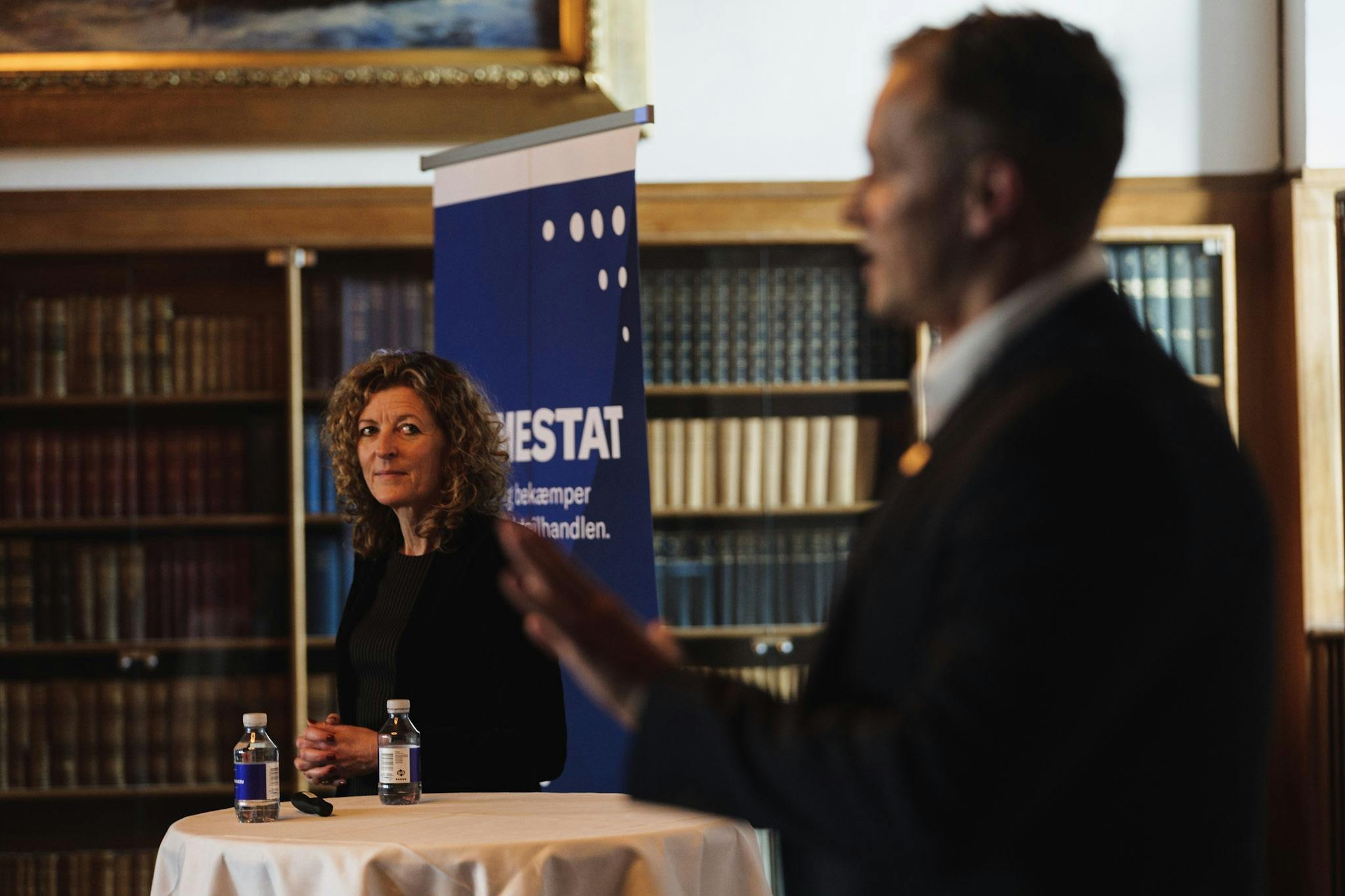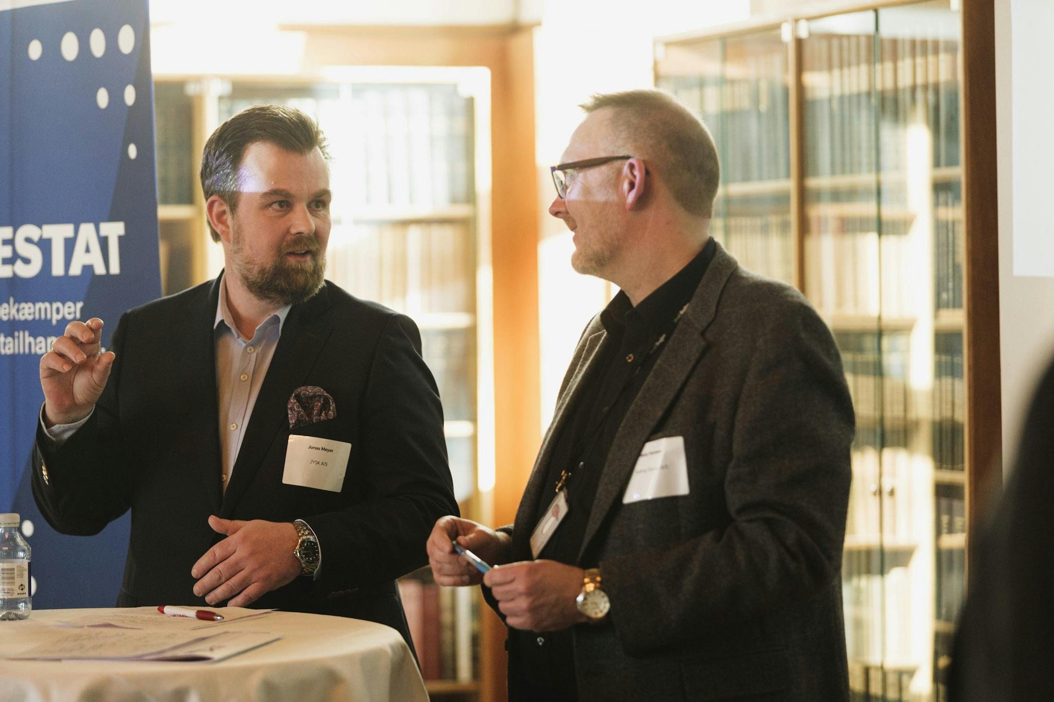 Jonas Meyer (Jysk) og Niels Hansen (Salling Group) udveksler erfaringer med butikstyverier og kriminalpræventive tiltag i detailbranchen.