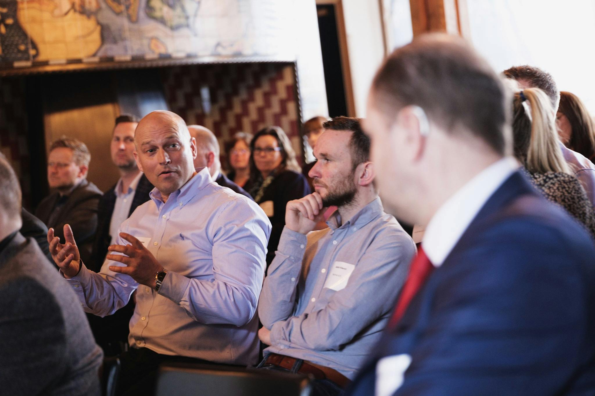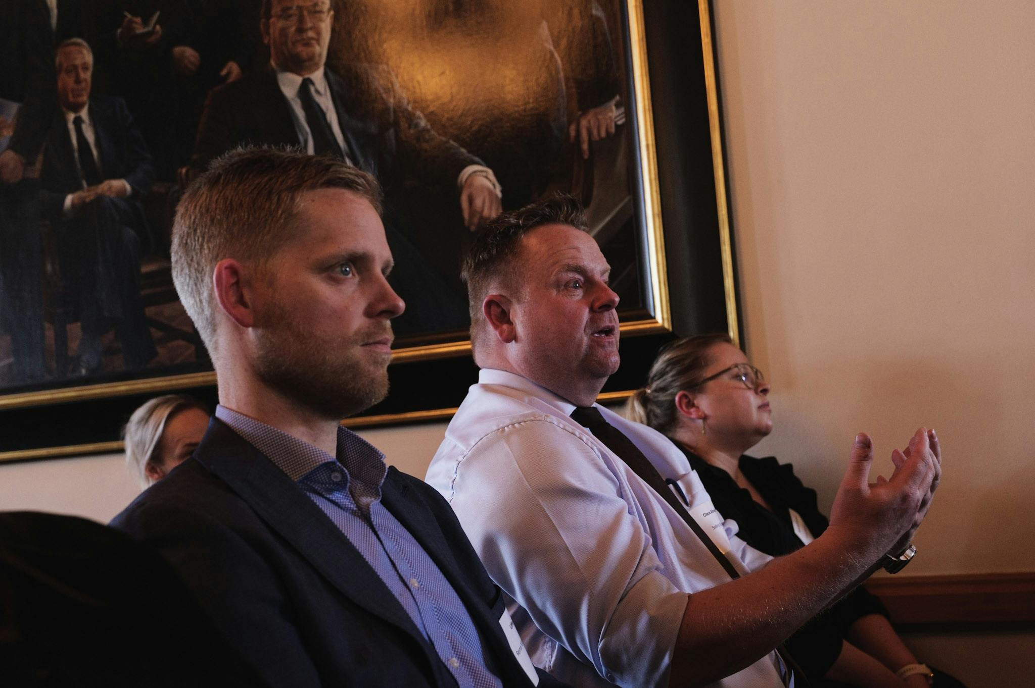 Publikum kommer med input til debatten, og der bliver diskuteret på tværs af salen.