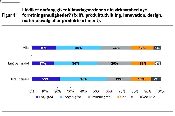Særligt detailbranchen er positiv i forhold til den grønne omstilling, hvor 59 procent svarer, at de ser nye forretningsmuligheder i klimaet, mens tallet for engrosbranchen er 51 procent.