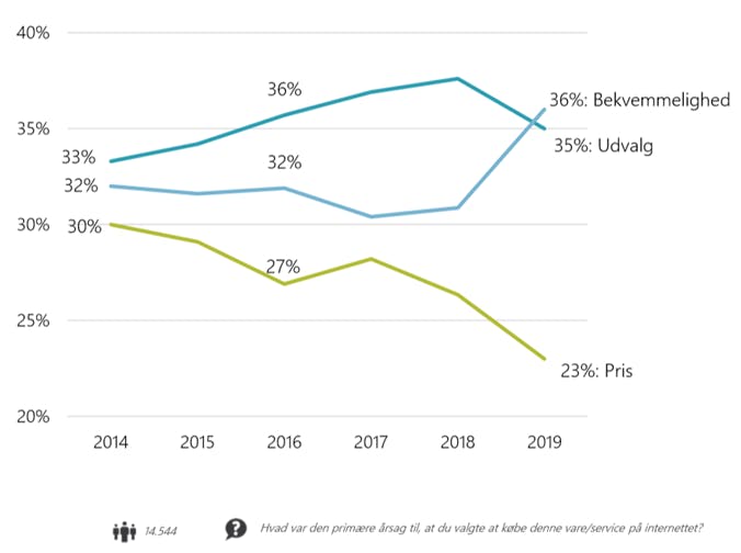 Bekvemmelighed og udvalg er de vigtigste grunde til at handle online, mens prisen betyder mindre og mindre. Endnu et tegn på, at forbruget online ikke topper foreløbig.