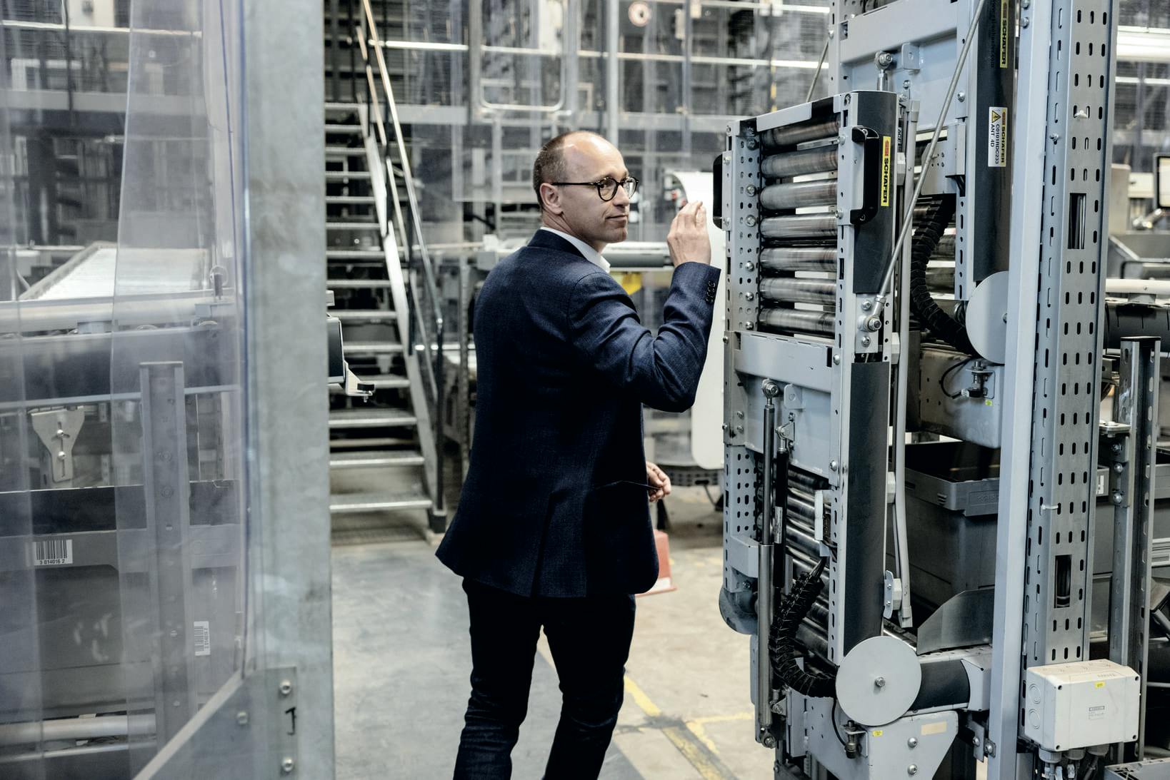 Indtrykket ændres dog, når man træder ind på det enorme centrallager. Her bliver virksomhedens store fokus på digitalisering synlig. Førerløse trucks drøner rundt, og robotter plukker og pakker 90 procent af ordrerne, der strømmer ind.