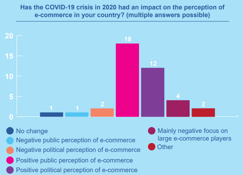 I en ny undersøgelse har E-commerce Europe spurgt 19 europæiske e-handelsorganisationer, hvordan coronakrisen og nedlukningerne påvirker e-handlen i deres land. Knap 70 % svarer, at netbutikkerne har markant oplevet fremgang under krisen, mens ingen melder om generel tilbagegang.