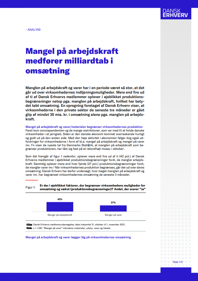 Læs Dansk Erhvervs analyse ”Mangel på arbejdskraft medfører milliardtab i omsætning” her.