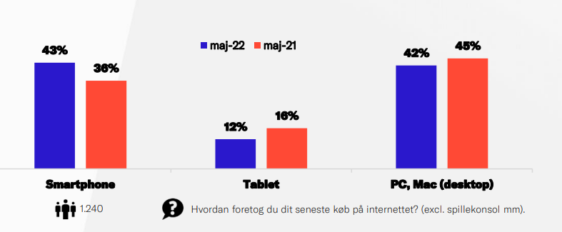 ”Det er gået i den retning længe, og i januar kom vi da også med den forudsigelse, at 2022 ville blive året, hvor mobilen overhalede computeren. Det skete så i maj, og jeg tror, at vi vil se det gentaget i flere måneder nu – måske især i sommerperioden, hvor forbrugerne er mere på ude og derfor har brug for at lave flere indkøb på farten.”