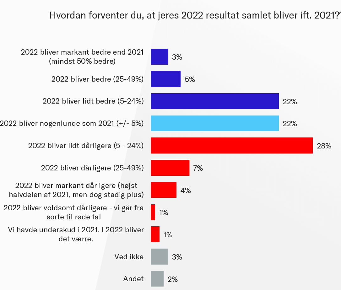 Salget er altså faldende i øjeblikket, og netbutikkerne forventer tilsyneladende ikke, at det vender lige foreløbig. Faktisk vurderer hver fjerde, at resultatet i 2022 bliver dårligere end 2021 – yderligere hver tiende forventer markant tilbagegang.