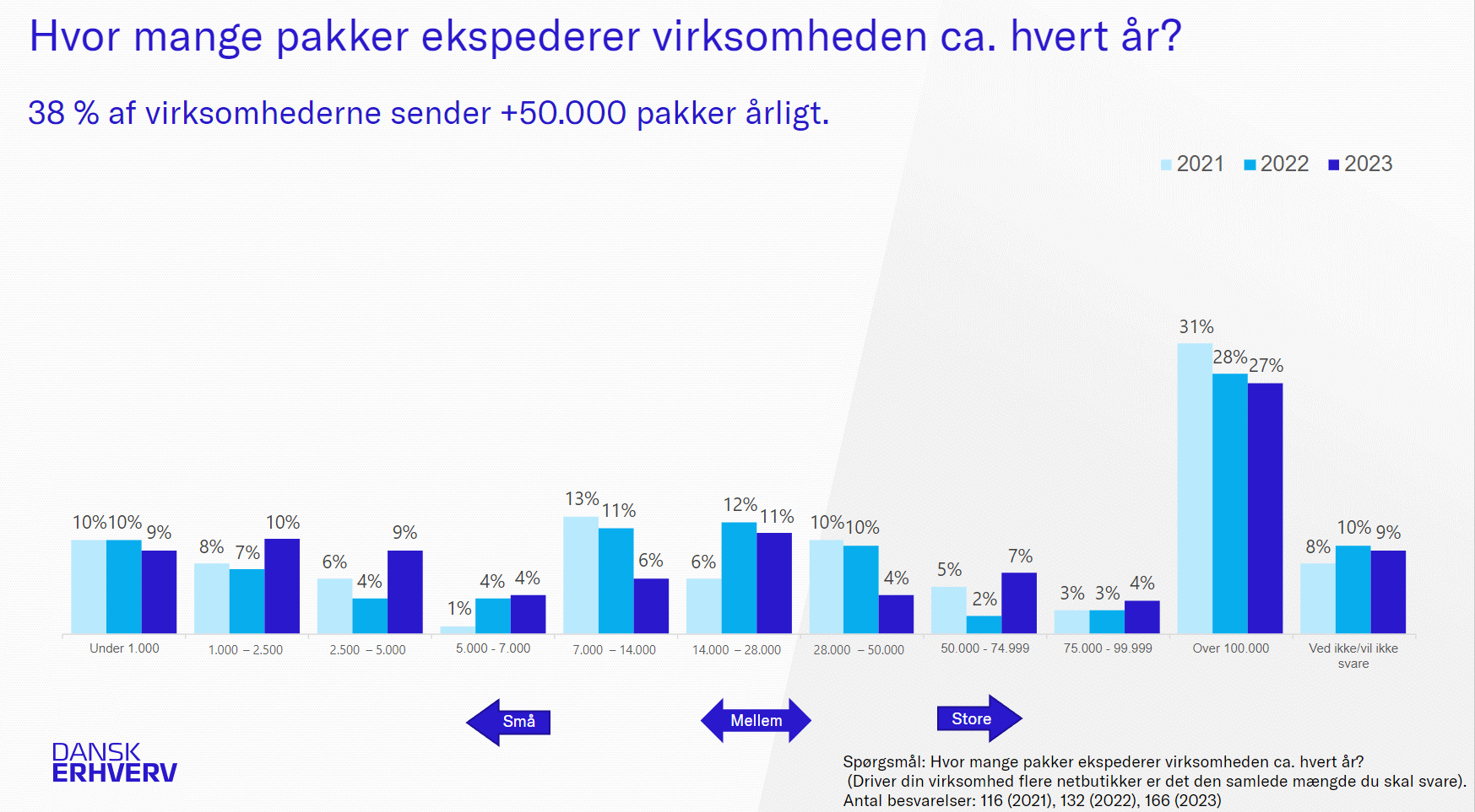 - 38 procent af virksomhederne i undersøgelsen mellem 50.000 og 100.000 pakker årligt.