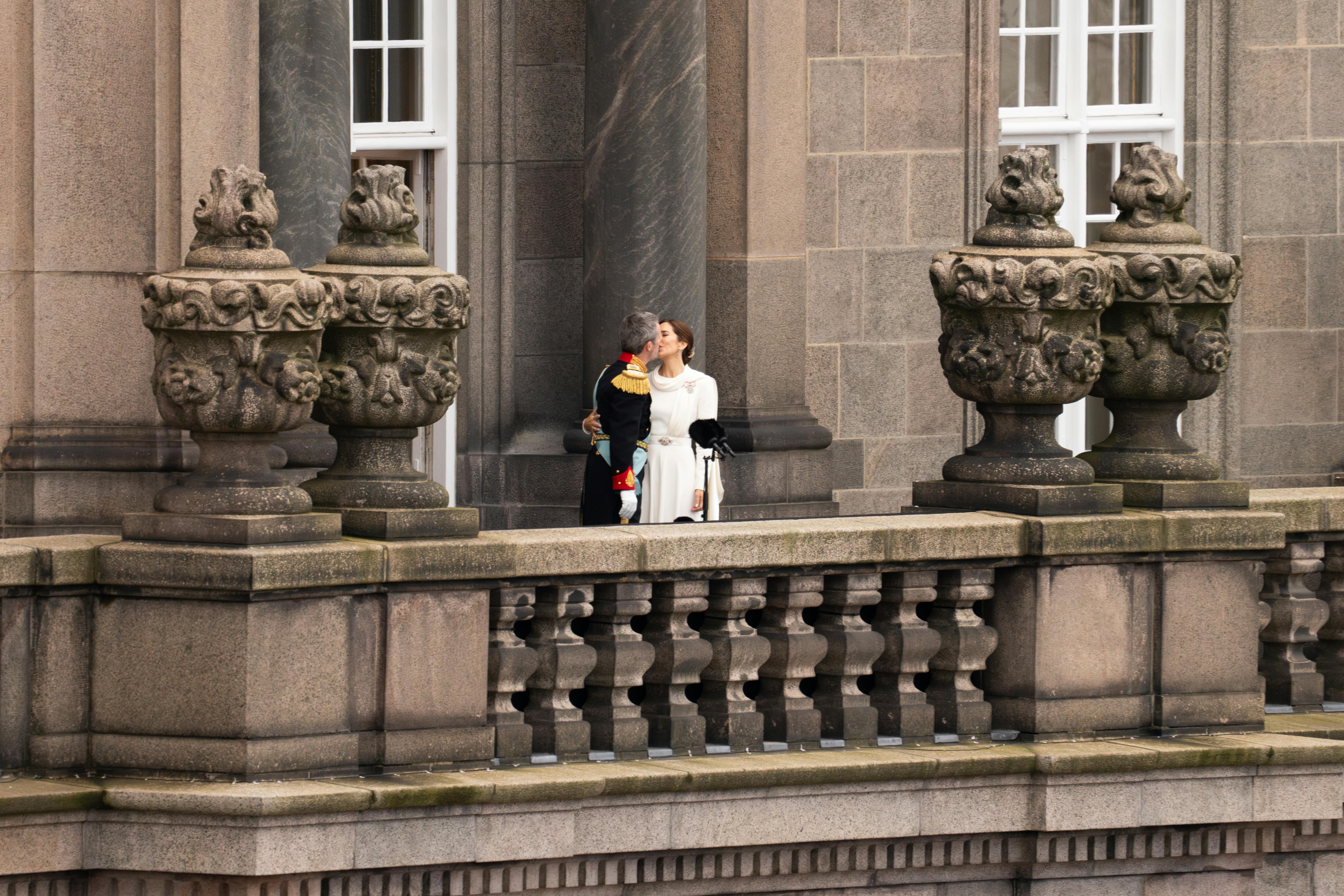 Der gik et sus igennem de tusinder af fremmødte på slotspladsen, da Danmarks nykronede Kong Frederik 10. kyssede sin smukke dronning Mary på balkonen.