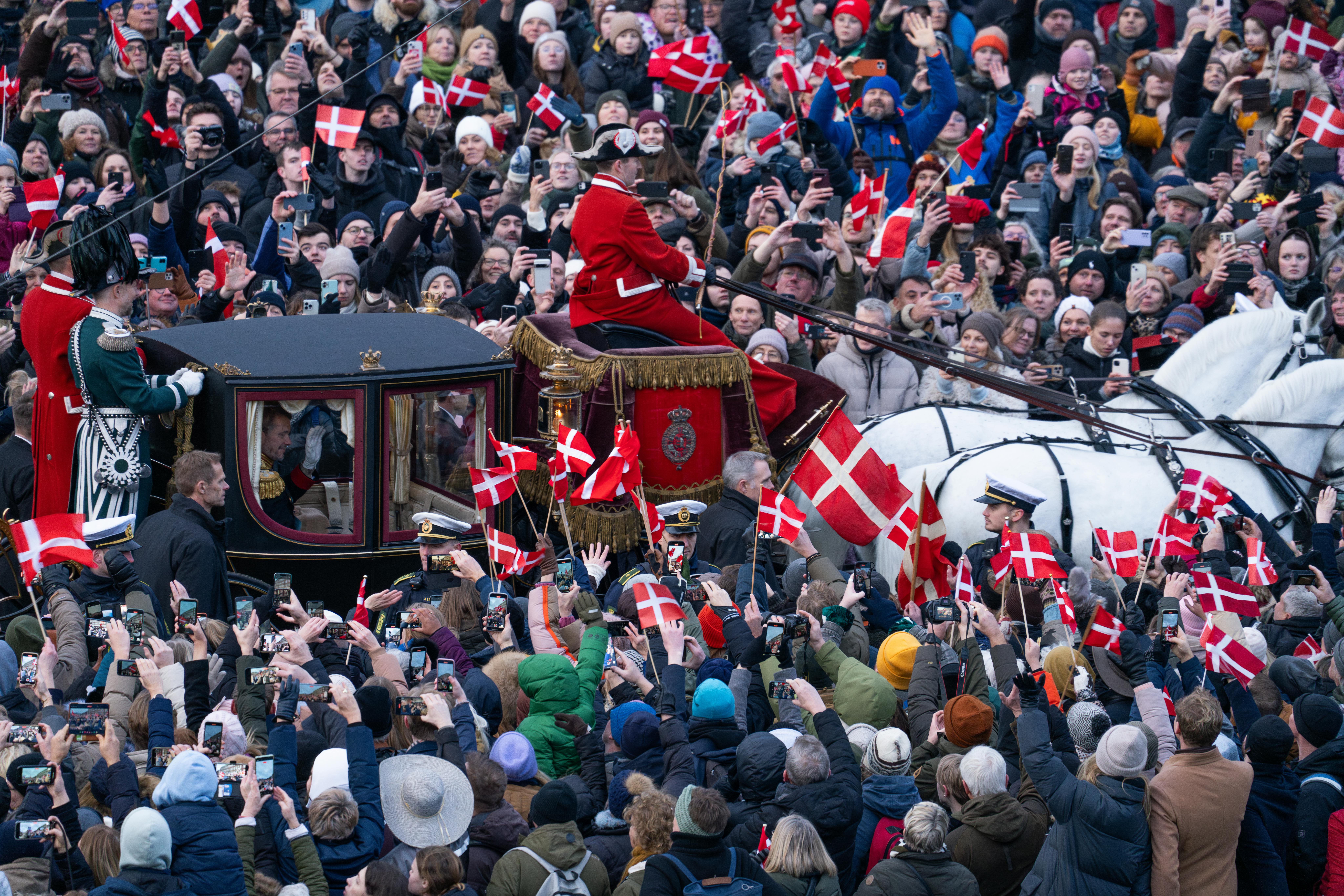 Christiansborg Slotsplads var fyldt til bristepunktet, da Danmarks nye kongepar begav sig ud på karetturen mod Amalienborg.