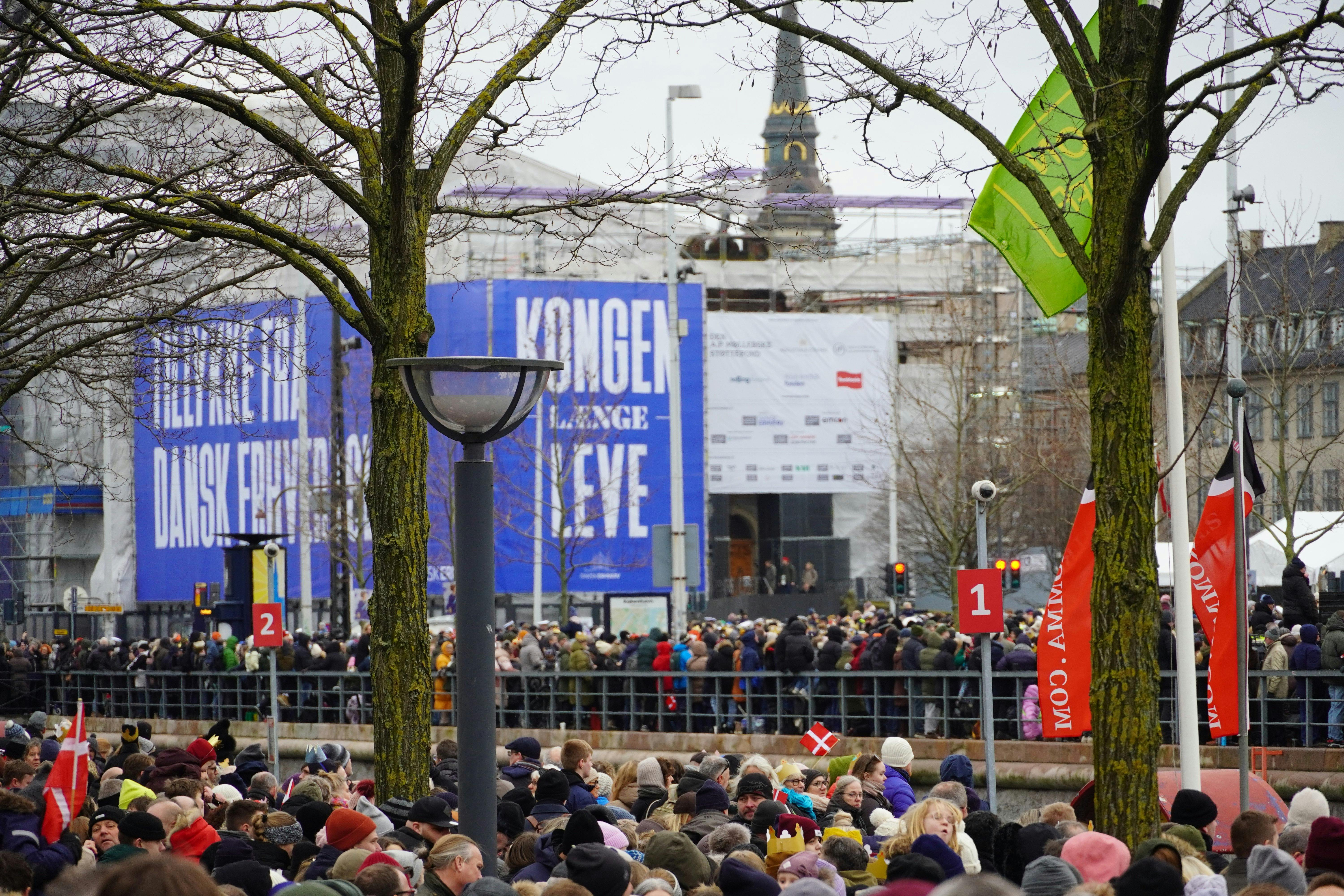Det så næsten ud som om, at hele Danmarks befolkning var stimlet sammen på Christianborg Slotsplads for at hylde den nye konge. På Børsen havde Dansk Erhverv sat en ganske særlig hilsen op til Kong Frederik 10., som ikke blot var blikfang for kongen og de tusindvis af fremmødte, men også for de flere end tre millioner danskere, der fulgte tronskiftet på tv. (Foto: Mads Claus Rasmussen/Ritzau Scanpix)