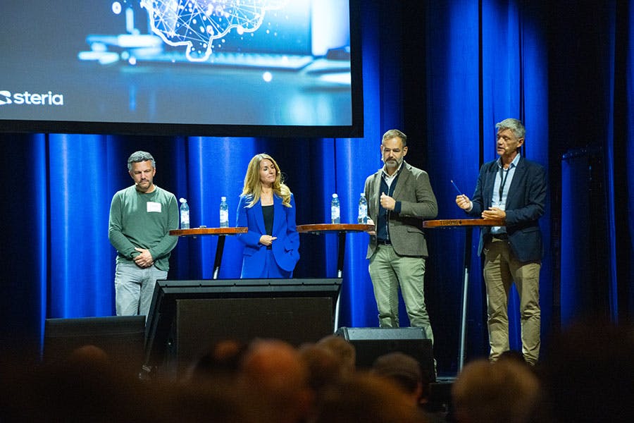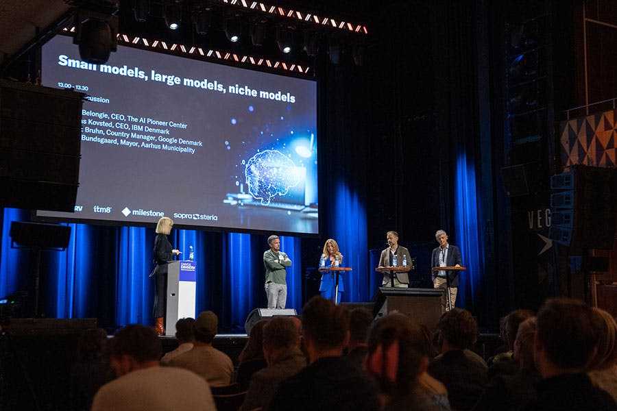 På scenen blev der debatteret store og små sprogmodeller og hvordan disse kan sikre innovation og vækst i den private og offentlige sektor.