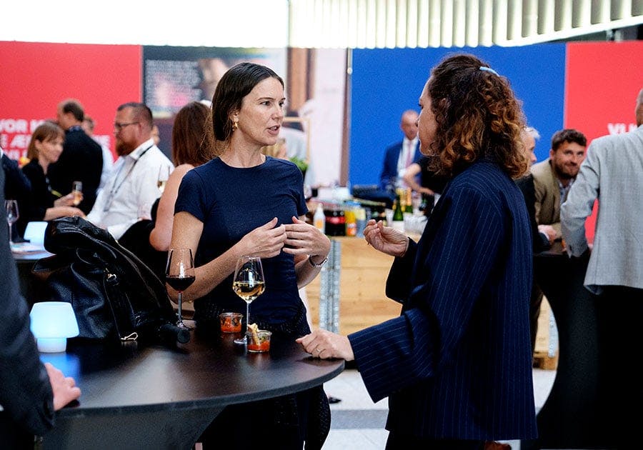 Susanne Bier er internationalt anerkendt stjerneinstruktør i Hollywood og i Danmark. Hun står bag et hav af prisbelønnede film og serier og er netop nu aktuel med Netflix-serien The Perfect Couple med blandt andre Nicole Kidman på rollelisten. Hun blev modtaget af stående klapsalver fra hele salen og en highfive af Brian Mikkelsen.