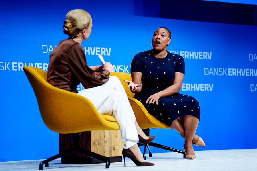 Hun er udråbt som et politisk talent i USA. Hun er forhenværende rådgiver og kampagnestrateg for vicepræsident Kamala Harris og præsident Joe Biden. Torsdag indtog Symone Sanders Townsend scenen til Dansk Erhvervs Årsdag med en sprudlende energi og et knivskarpt blik på det amerikanske præsidentvalg og dets betydning for Danmark og Europa.