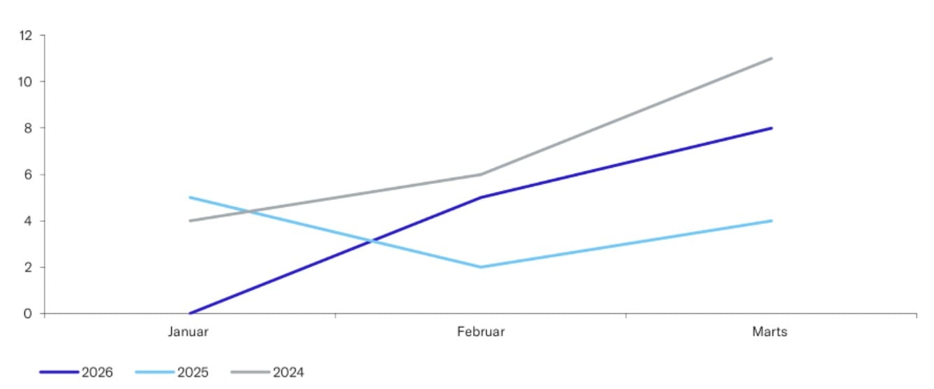 I første kvartal af 2026 er der registreret 4.40 tilfælde. Udviklingen fortsætter dermed den stigende tendens fra de seneste år. I første kvartal 2025 blev der registreret 4.616 tilfælde, hvilket betyder, at niveauet i 2026 er steget med knap fem pct. Januar og februar lander på henholdsvis 1.596 og 1.500 registrerede butikstyverier, men det er marts, der for alvor får alarmklokkerne til at ringe. Med 1.743 tilfælde er marts den måned med det højeste antal registrerede butikstyverier nogensinde målt i Crimestat. Samlet set tegner udviklingen et tydeligt billede af, at 2026 kan være på vej til endnu et rekordår for butikstyverier.