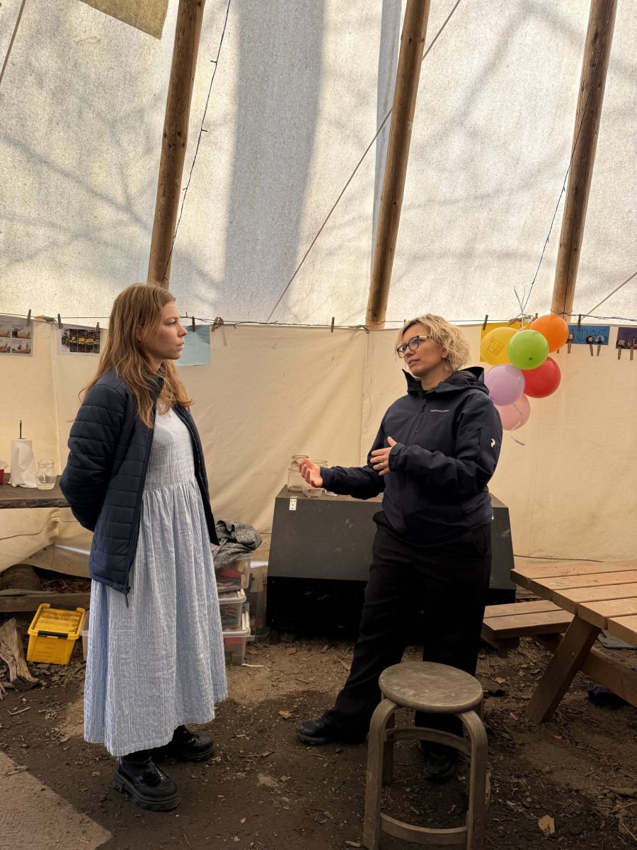 I skovbørnehaven Den Blå Anemone på Lolland deltog blandt andre Venstres folketingskandidat Iben Krog og borgmester Marie-Louise Brehm Nielsen i en drøftelse af vilkårene for mindre dagtilbud.