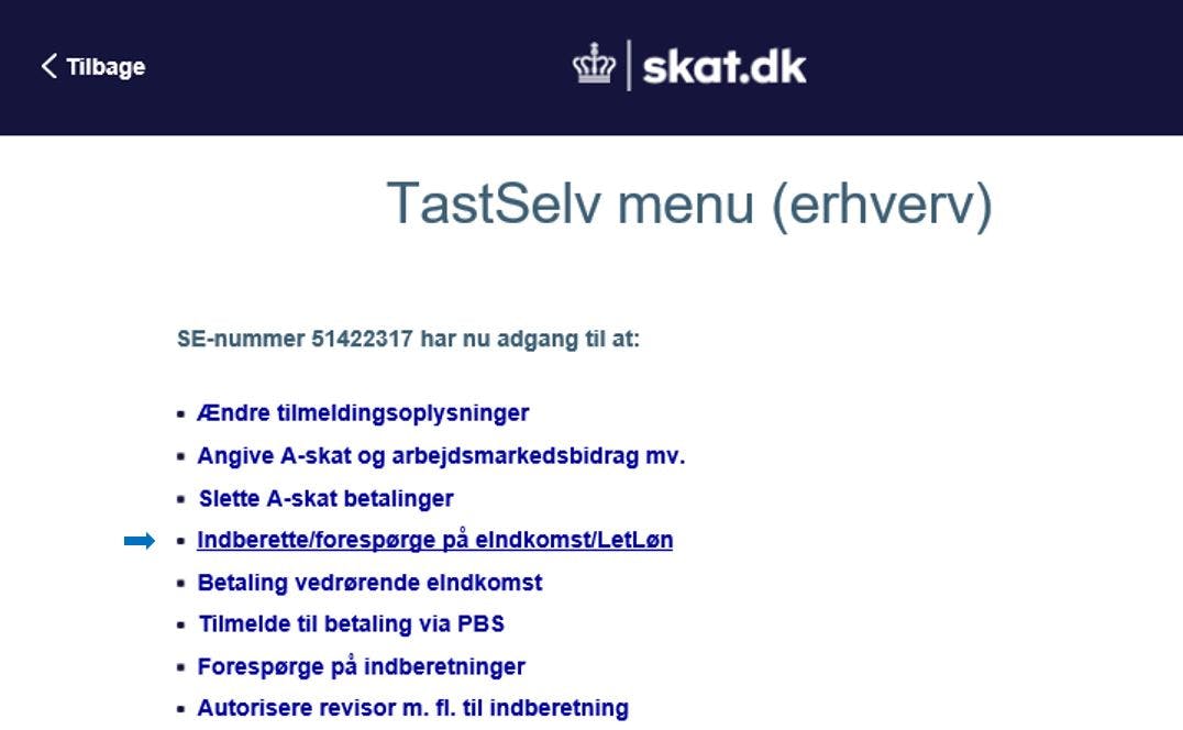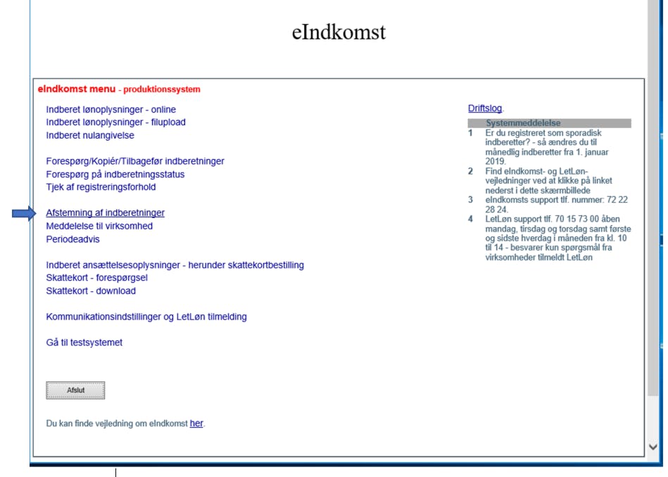Vælg Indberette/forespørge på eIndkomst/LetLøn